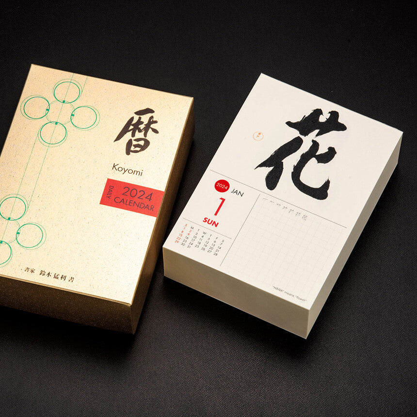 Koyomi is a day-to-day calendar designed to facilitate the experience of Japanese calligraphy. Compared to the Western aesthetic of appreciation, the Japanese aesthetic is rooted in functionalism and the practical beauty of Zen. Koyomi is a day-to-day calendar presenting Kanji characters by a master calligrapher. Introducing the meaning and stroke order of each character with space to practice, Koyomi instills the spirit of harmony within us and offers an enriching moment of focus, leaving the outside world behind.